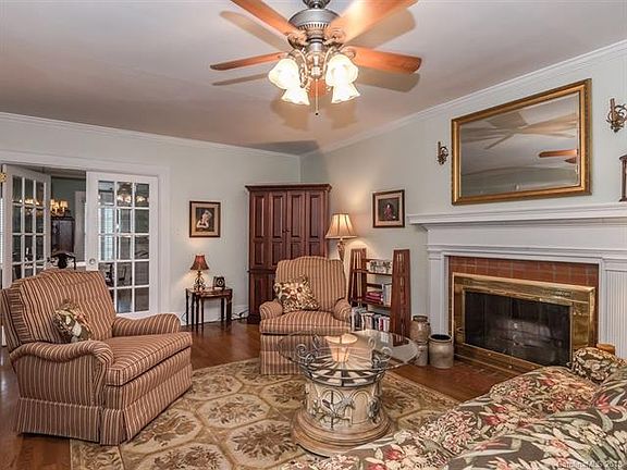 This charming home with lots of character sits on a large, treed lot. Formal LR comes with fireplace and plantation shutters. DR also has shutters and wainscoting. Pick a book off the built-in shelves with desk and enjoy reading in your cozy den with fireplace . The Kt has soft close drawers, Corian countertops, backsplash, and a walk-in pantry. Most rooms have hardwood flooring or tile. The detached double garage with workspace has electricity. Grow a garden or flowers in the large back lot with spigot available for watering and old shed to keep tools in. Just a short distance to downtown shopping and conveniently located to high school. **Will pay $3,000 in closing costs!**