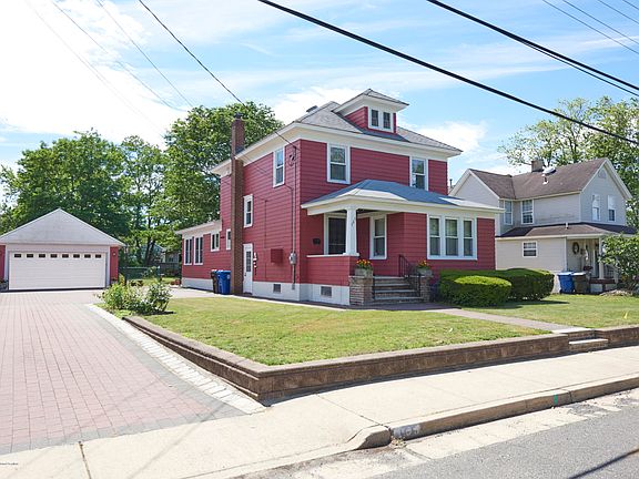 Move right in to this meticulously maintained 4 Bedroom, 2 bath home. Instantly you will appreciate the pride in ownership as you drive up onto a gorgeous 70 ft. long paver driveway lined with Belgian blocks leading to a 2-car detached garage. Walk up onto a charming front porch into a large living room with an open area that the current owners use as office. Generous sized eat-in kitchen open to a gorgeous 28 x 16 ft. sun-room with 3 walls of windows overlooking a beautiful fenced-in yard and garden. Convenient first floor master suite with full bath and laundry room. Upstairs are 3 more bedrooms, another full bath, and a walk-up attic. All this just minutes from both the bus and train, and only 1 mile from the Belford Ferry Terminal to NYC! No Flood Insurance Required!