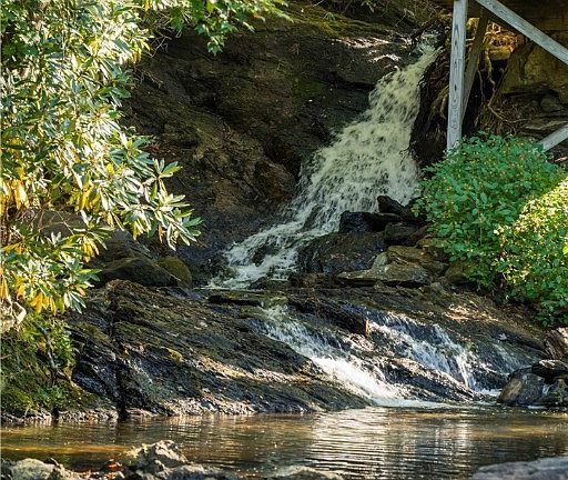 Hidden gem in the heart of Blowing Rock. Just blocks from the center of the village, this three-bedroom, two-and-a-half bath townhome with a single-car garage overlooks a waterfall and the New River. This remarkable home has been artfully updated and expanded. The main level has gorgeous new wooden floors throughout, the latest cabinetry in kitchen and baths, a new sunroom with floor-to-ceiling windows and a second stone fireplace overlooking the view, an expanded primary bedroom with a sitting area and window walls revealing the view with a built-in desk and storage. The state-of-the-art kitchen has been opened up by the removal of a wall. With a high-vaulted ceiling in the great room, the space feels open, spacious and gracious. The light-filled great room has a bay window and a stone propane fireplace. There are several sitting areas. The great room ends in the sunroom with its window walls revealing the river and waterfall, and a second stone fireplace with a flat-screen TV over the mantel, creating a cozy retreat. Entering the great room from the foyer is the kitchen with new cabinets and innovative storage features. All-new appliances complete a great compact space to turn out gourmet meals. A lovely, large granite countertop projects into the great room and has a seating area with barstools. The handsome countertop is a great place for serving buffets. Just around the corner is a dining room with a round table and chairs, overhung by an attractive chandelier. There is ample room for a bar and serving area. A triple window fills the room with light. From the great room, enter the primary bedroom and sitting room with new window walls opening to the views. From the king bed, one can often see deer grazing in the back. The room was doubled in size by adding a sitting area and hobby space with floor-to-ceiling windows, built-in desk and storage. Adjoining is a generous bathroom with double granite-topped vanities, huge walk-in tile shower and laundry area. A large walk-in closet is nearby. Just off the foyer are the stairs leading to the second-floor guest bedrooms and bath with tub/shower. There is a bedroom with twin beds and an office space. Across the hall is a queen bedroom. Both overlook the views of the river and waterfall. Adjacent to the dining room is the single-car garage with second refrigerator. Pull in and bring your groceries in through the dining room to the kitchen. The rear of the home abuts the common area with its rhododendrons, tall hardwood trees, wildflowers and a tributary of the New River and waterfall. New River Falls is a unique, landscaped neighborhood of 10 homes (five buildings) with two ponds, one with another waterfall. Within minutes, one can access the shopping, restaurants, museums and churches of the village. Within 2-3 miles, there is Appalachian Ski Mountain, Cone and Price National Parks and the Blue Ridge Parkway. There is nothing like this exceptional townhome in all of the High Country. Home is partially furnished. Ask for list. There is a discrepancy between professional measurement and tax card.