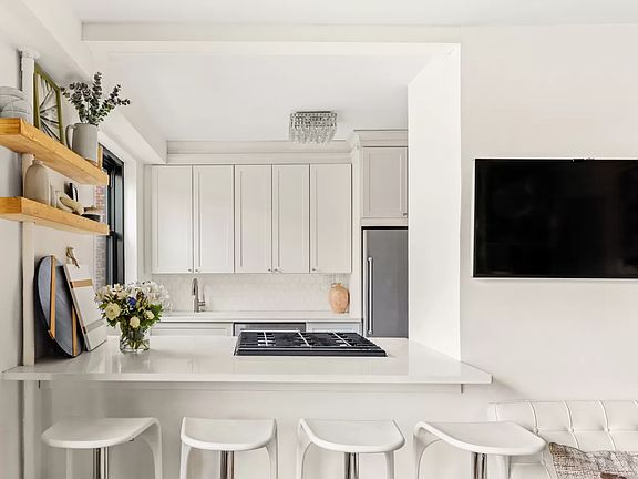 Make this stunning 2-bedroom home your very own oasis! Openness and light abound in this thoughtfully renovated home. The living room, replete with custom cabinetry for extra storage, masterfully melds into the dining area. The open-concept windowed kitchen is equipped with a wide breakfast bar, full-sized stainless steel appliances and even a wine refrigerator. The primary bedroom has two closets and is large enough for a king-sized bed and more. The double exposure to the north and west showcases classic views of this Brooklyn neighborhood and floods the room with natural light all day long. The secondary bedroom also has built-in cabinetry for extra storage. Classic subway tiles enhance the striking windowed bathroom. A total of 6 closets, including a walk-in closet, complete this glamorous home. Residence 3E is part of the Clinton Hill Apartments cooperative, which offers an array of amenities ranging from a 24-hour security service, maintenance staff, a central laundry room, bike storage and a common courtyard. This smoke-free coop welcomes pets and allows pied-a-terre ownership. The coop, at 165 Clinton Avenue, offers easy access to the G and C subway lines, and is close to countless neighborhood hotspots, including Fort Greene Park, farmers' markets, Wegmans, Russ & Daughters and the Pratt Institute Sculpture Park. Reach out today to see this gorgeous home!