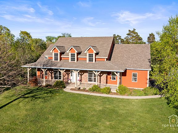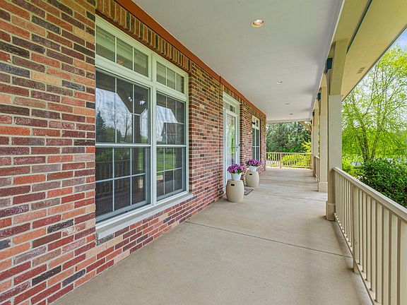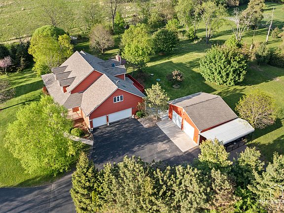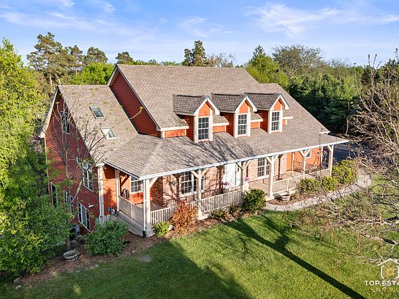 Stunning custom six bedroom North Barrington home nestled on a beautifully manicured 2-acre estate surrounded by mature trees and rolling green lawns. This timeless beauty with classic dormer windows and a wonderful wraparound front porch blends timeless charm with contemporary comfort. Step inside the large foyer to discover an open-concept interior flooded with natural light and freshly painted walls. The two-story great room boasts soaring cathedral ceilings, dramatic floor-to-ceiling windows, and a cozy gas fireplace - perfect for both quiet evenings and entertaining guests. Adjacent, the gourmet kitchen features sleek granite countertops, stainless steel appliances, double ovens, and a large center island with a gas cooktop. Crisp white cabinetry and rich hardwood floors add a touch of sophistication, while the sunny breakfast area offers panoramic views of the backyard. The open floor plan seamlessly connects to a spacious dining area and living space, making it ideal for gatherings. A grand staircase and an upper-level overlook add architectural flair and a feeling of openness throughout the main level. Retreat to the spacious first floor master bedroom featuring abundant natural light, plush newer carpeting, and a generous layout provides plenty of space for a king-sized bed and additional furnishings. All bedrooms have full baths. The bright and airy secondary bedroom offers comfort and flexibility. Ideal as a guest room, nursery, or home office, it features a large window for natural light and a peaceful atmosphere that suits any need. A cozy yet functional bedroom with warm tones and ample closet space. Its versatility makes it suitable for children, guests, or creative use like a craft or reading room. Bedroom #4 is perfect for family or guests, this charming bedroom offers a clean, comfortable space with room for a full or queen-sized bed. The soft lighting and neutral decor allow for easy customization. Step outside to a spacious elevated deck designed for entertaining or peaceful evening retreats. The huge finished basement is a truly speial, offering a large open area perfect for a media room, play space, home gym, or potential in-law suite. The family room is the heart of the home. Featuring a cozy fireplace, large windows, and space for oversized seating, it's ideal for gatherings or quiet nights in. Outside, you may enjoy the privacy of your expansive lot, complete with a long paved driveway, detached huge two XL door detached garage, and a carport perfect for boats, commercial vehicles, and lots of toys! Whether you're looking for the tranquility of country living or a versatile home designed for family life and hosting, this property is the perfect blend of style, space, and setting.