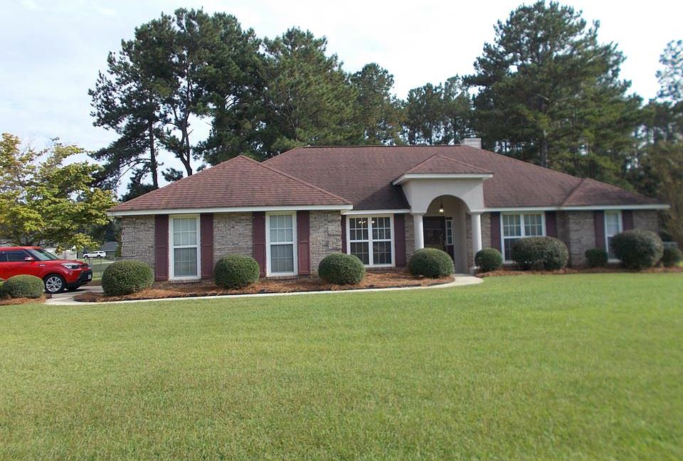 Great location Lee County. This 4 bedroom 2 bath well maintained home on corner lot with 1.23 acres. As you enter foyer to your left is your dining room and to the right formal living room or your home office. From foyer you enter great room with vaulted ceiling and wood burning fireplace and French Doors to covered screen porch. The master is off great room with separate bathroom with walk in closet, jetted tub, shower and toilet room. The other 3 bedrooms are on the opposite side of home. A full bath, Utility room and large storage closet. The kitchen has breakfast bar and also breakfast area overlooking back yard. After a long day you can relax on the covered screen porch. On the property is a wired storage building. The home also has sprinkler system and a transferable termite bond. Current owner has been in home since 1999. Make an appointment to see this large brick home with 2 car garage on a corner lot with a fenced back yard great for family gatherings!