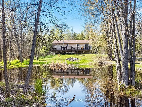 165 Cuckoos Nest Road, nestled on 22 acres of serene natural beauty, is a charming split-level home that offers the perfect blend of comfort, space, and seclusion. With 4 spacious bedrooms (2+2) and 2 full bathrooms, this property is ideal for families, nature lovers, or anyone seeking a peaceful retreat. Surrounded by mature trees, lush bushland, and winding trails, the home offers significant privacy and a true escape from the hustle and bustle of the city life. Just 20 minutes from Carleton Place, Smith Falls and Perth, and only 25 minutes from Kanata, here you can explore your own backyard oasis with scenic walking paths, multiple ponds attracting local wildlife, and endless possibilities for outdoor activities. Inside you will find cozy living spaces perfect for entertaining or relaxing. The main floor features a warm, and inviting layout with plenty of natural light, a functional kitchen, a huge primary bedroom, a second bedroom and/or office, plus 2 full baths (1 being a four piece en suite) The lower level has high ceilings, a huge family room plus 2 additional and exceptionally large bedrooms. The home also offers a main floor mudroom and foyer, with inside access to the double car garage. Whether you're enjoying quiet mornings on one of the two decks, sitting by the pond, hiking your private trails, or even gathering with loved ones under the stars, this unique property offers a lifestyle of tranquility and connection with nature. A rare opportunity to own a private slice of paradise. Hot tub has not been used in several years and is being sold as is. 24 hours irrevocable on all offers as per a written form 244