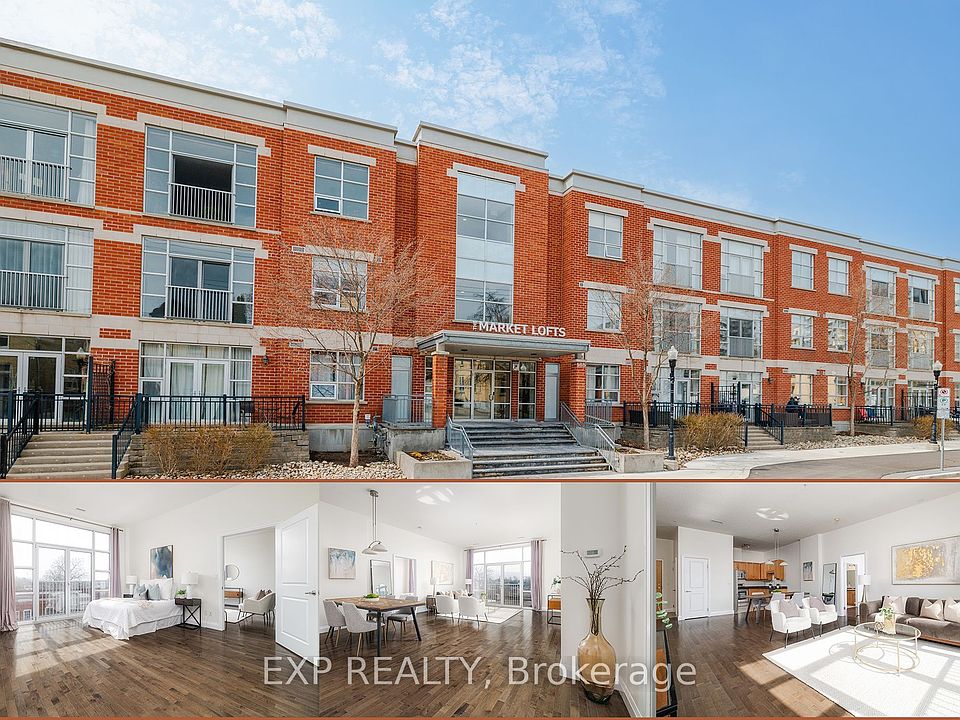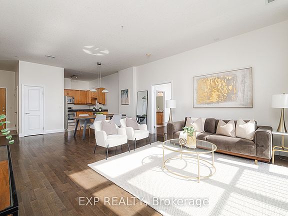 Welcome to 165 Duke Street Unit 305 - Where Urban Living Meets Comfort and Style! Step into this rarely offered top-floor, south-facing condo in the heart of Kitchener's vibrant Market District! This spacious 2-bedroom plus den unit boasts 10-foot ceilings, rich hardwood flooring, and ceramic tile throughout, creating a modern yet warm atmosphere. The open-concept layout features a generously sized living and dining area, flooded with natural light from two Juliette balconies. The modern kitchen is ideal for both everyday living and entertaining, with granite countertops, stainless steel appliances, a separate pantry, and ample prep space. The den offers a quiet, dedicated space - perfect for your home office or reading nook. Enjoy the convenience of in-suite laundry with additional storage space, as well as a separate owned locker and underground parking. The building offers desirable amenities including a party room and a beautifully landscaped private courtyard and outdoor terrace - ideal for relaxing or entertaining. Located steps from the Library, KW Art Gallery, Kitchener Market, School of Pharmacy, Tech Hub, and the upcoming LRT line, this unit places you in one of the most desirable, walkable neighborhoods in the city. Surrounded by incredible restaurants, cafes, and culture, this home combines the freedom of condominium life with the enjoyment of urban outdoor living. Don't miss this rare opportunity to live in one of Kitchener's most sought-after addresses!