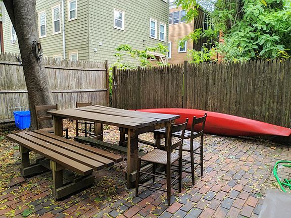 Fully furnished and renovated single triplex loft townhouse, in a quiet tree line street, 4 bedroom and 2 and 1/2 bath, rent includes heat, hot water, gas. Master suite has separated dressing room. New roof and siding, new kitchen with dishwasher, build in microwave. Excellent location, short walk to Central Sq. MIT. BU. Trader Joe's, Whole foods.. Parking available in front of the house. Free laundry, private fenced in yard with patio and picnic table and grill. All bedrooms are different sizes, idea for 4 roommates needs privacy and different budgets. Available 9/1/2025. There is no first month and last month deposit when lease signed. Broker fee negotiable. Please call for showing. Heat, gas, hot water are included. Small dog or cat ok. No 1st month and last month rent required prior signing the lease. .