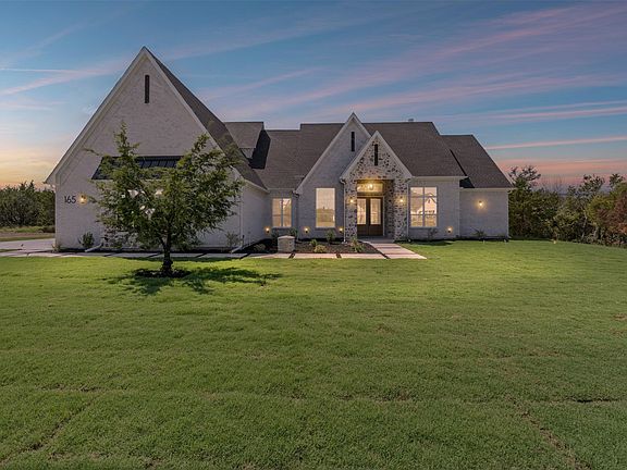 This home offers seamless flow between the spacious living room, kitchen, and dining area. Clean architectural lines, soaring ceilings and expansive windows create a bright, open atmosphere from the moment you step inside. The heart of this home is a gourmet kitchen equipped with top of the line appliances, custom inset cabinetry, quartzite countertops with an oversized island, and a large hidden pantry with cabinetry, beverage refrigerator -ideal for gathering with family or entertaining guests. It also features an oversized cathedral patio, primary suite with its own fireplace along with large stone fireplace in the main living area, custom dog wash. No HOA in this development, deed restrictions allow a guest home up to 2000 sq feet in addition to a metal building.