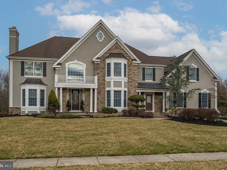 Here is your opportunity to move into The Grande at Moorestown - a small prestigious community in Moorestown located off Tom Brown Road. Make your way up the beautiful front paver walkway to one of two front entrances. As you enter through the main entrance, you will be awed by the soaring two-story foyer with a beautiful chandelier. To your right, the dining room boasts wainscoting on the walls and a tray ceiling with crown molding. On your left is the formal living room, with a fireplace and large windows that allow tons of natural light into the room. As you make your way around the first floor, there is a half bath separating the living room and the office. The office is very spacious, and private. The large family room has another fireplace complemented by large windows with a view to the backyard. The family room is open to the gourmet kitchen which features a large center island, 42" cabinets with under lighting, tiled heated floors, a pantry, and a wet bar area connecting the kitchen and formal dining room. The kitchen is spacious and has a breakfast area with sliding doors out to the back deck to enjoy the warm morning sunshine. Completing the main level is a laundry/mud room with a closet and more cabinet storage. There is a second half bath conveniently placed on this side of the house across from the entrance to the 3-car garage with epoxy coated flooring. This is also where the convenient back staircase is located which leads to the second level. The upper level offers a spacious primary suite with sitting area, a tray ceiling, 2 large walk-in closets. The primary bath has been meticulously maintained with his and her vanities, a large shower, a soaking tub and a private water closet. There are 3 additional bedrooms on this level. One bedroom includes a private bathroom and walk-in closet. The two bedrooms at the end of the second floor share a jack-and-jill bathroom. Want more space to live or entertain? The finished walk out basement has a large open layout for entertaining, a full bathroom, two additional rooms (gym, guest or media room?), and a closet for more storage space. There is also a staircase that leads out to the garage.
