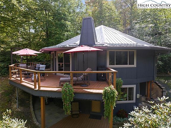 Step into this immaculately maintained and artfully decorated pentadecahedron—a one-of-a-kind architectural gem nestled in the heart of the mountains. Boasting 4 bedrooms and 3 full bathrooms, this round house invites you into a world where modern updates meet mountain charm. The living room, anchored by a striking stacked stone fireplace, is the perfect place to relax after a day on the slopes. The main level features 3 serene bedrooms and 2 full bathrooms, while the lower level offers a private retreat with an additional bedroom and bath. Recent enhancements, including a new metal roof with gutter guards (2019), new HVAC and furnace (2020), and newer doors and windows, ensure peace of mind and efficiency. Outdoors, take in breathtaking winter views of Beech Mountain and enjoy ample space for entertaining or simply soaking in the natural beauty. With plentiful parking and just steps from the Sugar Mountain Ski Resort, Golf Course, Tennis Courts, and scenic hiking trails, this home is a true mountain sanctuary, blending adventure and tranquility in equal measure. The Mountains Are Calling...Are You Listening?