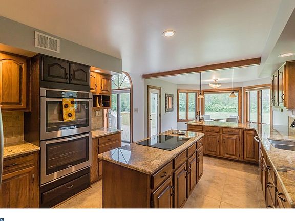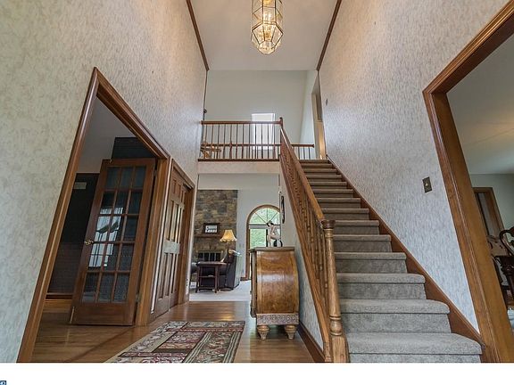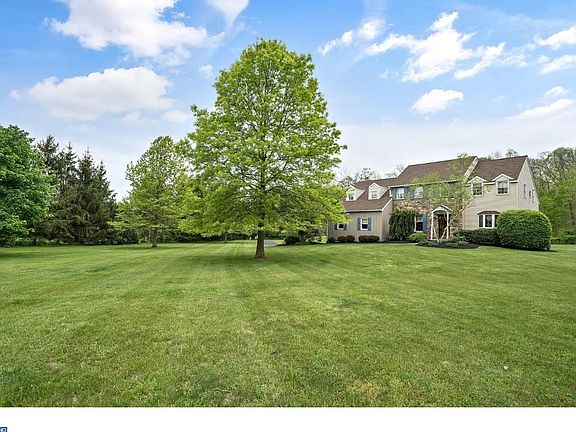 Your very own retreat in this secluded custom built 4 BR, 3-1/2 bath stone front colonial on private 3.8 acre lot in beautiful Salford Township. Private but only steps away to a park with ball fields, tennis courts and fishing. Minutes to shopping and dining in Harleysville. The unique architecture and floor plan features a wonderful Large Master Bedroom suite and Luxury bath. So many upgrades and features including formal Living Room, Dining Room with Hardwood Floors and Bay Window, 2 story Hardwood Foyer, spacious 2 story Family Room with floor to ceiling stone fireplace. Amazing new gourmet kitchen with island, granite counter tops, tile back plash, stainless steel appliances, double oven, cooktop and 2 sinks. Eat breakfast overlooking the expansive rear yard at either the Breakfast Bar or in the Breakfast Area. The second floor offers 3 large bedrooms, updated Hall Bath, another framed out bath with a tub, and a large storage room or office. There is an overlook to the Family Room from the Bridge to all second bedrooms. The large unfinished Basement has an outside entrance and is ready to finish. Off the Family Room is a new private rear deck leading to the lovely rear yard. The home offers many updates by the owner including updated Bathrooms, Kitchen, newer roof, newer HVAC system. Plenty of storage in the large 2 car garage and shed. The privacy that is offered by the long driveway and the secluded lot is not found anywhere in the area.