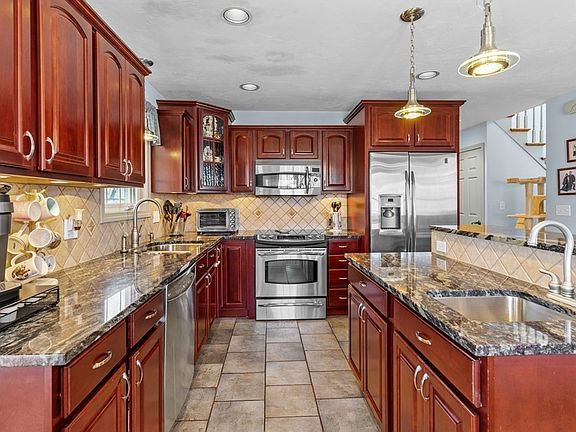 BACK ON MARKET BUYER FINANCING FELL THROUGH. Their misfortune is your gain. Stop whatever you are doing and run to see this stunning home! Nestled in the Maplewood section, prepare to be wowed at every step by this beautifully updated home. Features an open floor plan, stainless appliances, granite countertops, gas fireplace and first floor laundry. Large primary bedroom with skylight and double closets, second floor bathroom has a wonderful jacuzzi tub. Basement is 90% finished with living room and wet bar and full bath. Bar area features inlayed tile floor with all your favorite New England teams. Enjoy the seasons on your screened in patio overlooking the Koi Pond and saltwater pool. Yard is enclosed for privacy being fully fenced in.**OPEN HOUSE MONDAY JUNE19th, 6-7:30PM**