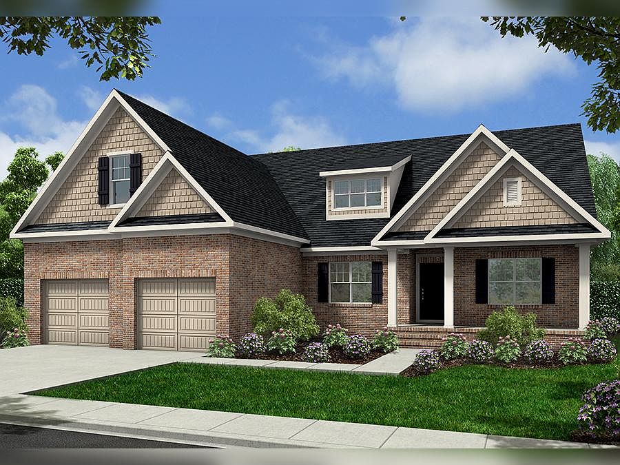Gorgeous all-brick, 2 story home by Arden Homes now under construction! Approximately 2,500sf with open main level layout, 9ft ceilings & engineered hardwood floors in "Rustic Vision - Sandcastle Oak," and interior paint in "Agreeable Gray." Bright kitchen with tons of cabinet space and island, shaker cabinets in "Boardwalk" mid brown, with quartz countertops in "Leathered Black Pearl" and "Ethereal Glow" on island and large subway style tile backsplash. Upgraded features include primary bath walk-in shower, dormer, 3rd full bath, and gourmet kitchen. Main picture shows similar style, will be different color scheme and front load garage. See photos for design selections & example interior pics. 1/2 Acre Lot! Located in beautiful established Gentry Farm community in the heart of King. A few lots remain, start your dream home today in Gentry Farm! Measurements & info taken from builder plans/specs, subject to change. {SOMERSET PLAN - Elevation B}