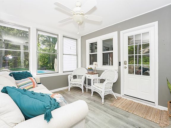 OFFER ACCEPTED OPEN HOUSE CANCELLED!SUMMER FUN AWAITS! Move in ready, not a thing to do! This lovely home has so many great features. Oversized 2 car garage leads to an enclosed sun porch surrounded by windows. Enter the updated kitchen with beautiful cabinets, stainless appliances, under cab lighting, tile backsplash, granite breakfast bar, & dining area. Down the hall a full bath has tile floors & shower. A roomy first floor bedroom has hardwood floors. The living room is just gorgeous!! The fireplace has scalloped wood trim/mantel & brick surround. Great natural light from the picture window, & wood shelving next to stairway. Upstairs, both bedrooms are front to back, with hardwood floors & the primary is roomy enough for a king bed. A 2nd bath with granite counter, tile floor & tub/shower completes this floor. A wide open, spacious finished basement. An INGROUND POOL with paver patio & fencing makes for the perfect PRIVATE back yard. This won't last!