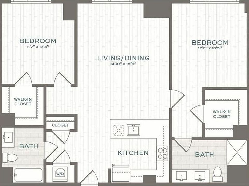 Floor to ceiling windows Keyless entry Quartz countertops Walk in closets Wood style flooring Kitchen islands Light and dark cabinet options Bosch high efficiency ventless washers and dryers Under cabinet lighting Outlets with USB ports Balconies and Juliet balconies available Premium units with upgrades available Stainless steel appliances