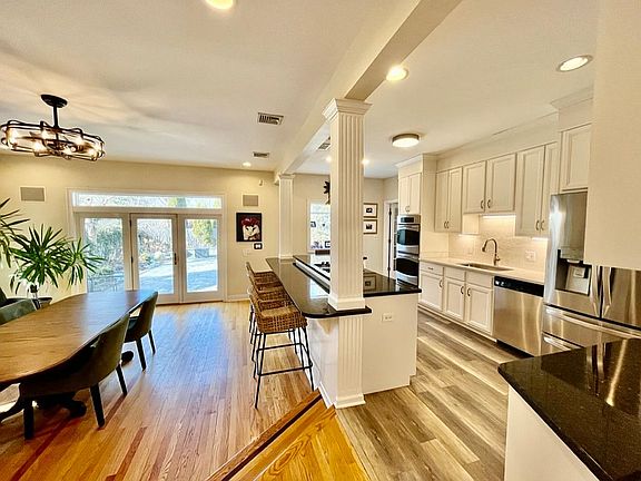 You’ll love the light and bright updated kitchen/great room with French doors to the patio and hardwood floors. The first floor has a fully remodeled full and half bath. Two main level bedrooms offer opportunities for in-law or teen living or added office/craft space. In addition to two living rooms, there is also another large room with French doors to the backyard that can serve a variety of needs. The second floor boasts a huge primary bedroom complete with hardwood floors and multiple closets as well as two nice-sized bedrooms, an updated bath and a large laundry room. There is an abundance of closets on every floor!