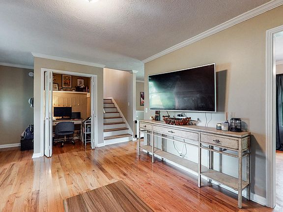 4 bedroom, 2 bath home with a finished detached outbuilding (with heat/AC) perfect for a home office! Large 1 acre lot sits next to an unbuildable lot giving you privacy and space! Wood floors in the main level living area and wood-look vinyl plank in heated & airconditioned detached outbuilding. Spacious eat-in kitchen. Split stairs go half flight up to 3 bedrooms with 1 full bath & an additional vanity area in the primary bedroom. Half flight of stairs down from main living is a 4th bedroom (2nd primary bedroom or large bonus) with laminate flooring and full bath w/large tiled shower. Also on lower level is laundry and outside access to the carport and outbuilding! 2 car attached carport. Patio with built-in gas line for grill. Large yard backs to woods!