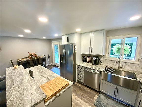 Looking for a home that is absolutely READY? Fantastic ranch home in a private setting with beautiful updates and care. Let's start on the main level of the home. Eat in modernized kitchen open to the livingroom. Leather granite counter tops, SS appliances,propane stove. Flooring is Life Proof a super high grade laminate. Hardwood flooring in the bedrooms. Beautiful main bathroom. Walk out from kitchen/dining area to a covered deck with composite flooring. Walk down stairs from the deck to a 60x32 heated in ground pool,3' to 6’ deep with custom designed concrete surface and sitting area. All vinyl fencing surrounds the pool for privacy. Master Bedroom is in the basement level with slider door to pool area. Also features a large master bath and closet. Game room/family room features a brick woodburning fireplace. Detx 2 car garage 28x26 with 9' doors and epoxy flooring, wood stove, water,electric. Concrete driveway. Other updates roof 2017,pool 2021,furnace & A/C 6 yrs old