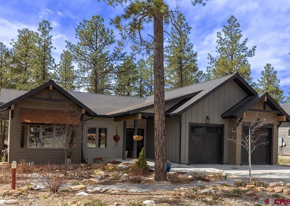 Discover modern, single-story living nestled among majestic pines, mere moments from the heart of Durango. This much sought after community, with an open living floor plan, features exquisite touches and boasts an array of premium features designed for comfort, efficiency, and aesthetic appeal. Welcome to your home that harmonizes three spacious bedrooms and two full bathrooms with functional spaces like a cozy office/den, all complimented by a generous three-car garage. Enhancements include a four-piece suite of stainless-steel appliances set against a stylish kitchen backsplash, with adjustable LED under-cabinet lighting, illuminating the quartz countertops found both in the kitchen and bathrooms. The living spaces blend beauty and durability with engineered hardwood floors throughout the main living areas, master bedroom (complete with patio access), and an office/den. Plush carpeting in the guest bedrooms ensures a welcome retreat. The large master suite is a sanctuary of relaxation, featuring a free-standing tub, a large walk-in shower with a tile surround and glass door, and an additional linen cabinet for added convenience. The living room, a hub of comfort, is anchored by a gas fireplace adding warmth and character. Satin nickel fixtures, ceiling fans in the living room, master and guest bedroom, and French doors to the office/den enhance the home’s elegant and contemporary feel. The laundry room has been thoughtfully designed with upper and lower cabinets, and a black granite sink, ensuring functionality meets style. The large covered, rear, elevated patio/deck invites you to enjoy the beauty of nature, wildlife visits, and a refreshing daily respite. Both front and rear rock garden areas are professionally landscaped with a flowing flagstaff walkway, a dry riverbed, and splashes of color from seasonal flowers, shrubs, trees, and abundant ground cover year-round. This one-of-a kind botanical array will brighten your day and bring peaceful reflection. Automatic irrigation makes for easy care and maintenance. The rear gardens are just steps away from an adjoining 2 ½ acre open space with abundant Ponderosa pines, connecting to numerous peaceful walking trails throughout the community. This is mountain living at its best. Embrace the perfect blend of nature's tranquility and modern luxury in this stunning, warm, and comfortable Durango home. Call today for a viewing.