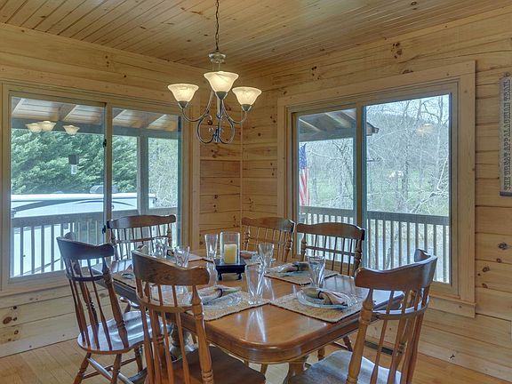 If Momma ain't happy no one is. Momma will be HAPPY and Papa too! 1st class Toccoa River Home with open floor plan and 142.8 ft. frontage on the Toccoa. Fish from your back yard while your wife enjoys all the perks in this beautiful home! Gourmet Kitchen with top of the line appliances and beautiful granite. Upgraded windows. 1 BD/1 BA and laundry on the main. 2 BD/2BA and second laundry on the upper. Huge Master Suite with gas log FP and walk in closet, California style! 2 screened porches (1 has FP). Drive under Garage plus 3 car free standing garage with work shop area and bonus room above. Please see attached list of improvements and upgrades. Must see to appreciate!