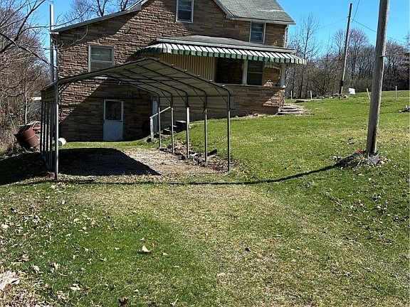 Not lived in for many years. Property slopes down in the back, great for grazing animals. County living. House will need a new roof, home warranty included in the sale.