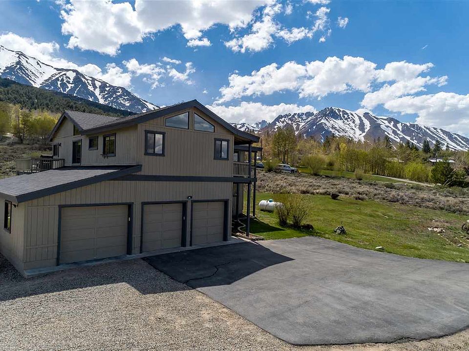 Spectacular setting on 1 acre with your own creek and pond, plus clear vistas up to the snow-capped mountains and down to Crowley Lake, and backing up to USFS land. 4 bedrooms, 2.5 bathrooms, 4-car garage, and open kitchen. Also has forced air heating, two fireplaces, large yard, equestrian zone overlay, and private well with plenty of water. Custom pull-out baseball batting cage/golf net in garage, sledding area out back in the winter, shed for garden supplies, and access to trails and world-class fishing within minutes! Even comes with a laundry chute! Direct view of the 4th of July fireworks from the decks. Well water recently tested and is clean; radon levels are below EPA limits. Time to move the family to 165 Hilton Creek Dr!