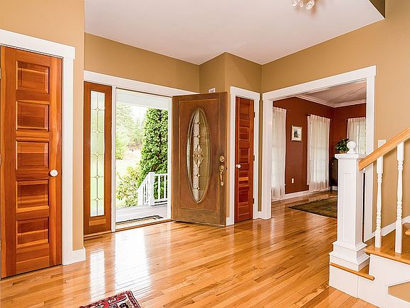 Quality, character and substance come to mind when you enter this well-appointed, custom built, three-story colonial. Wake up each morning to the tranquil sounds of nature, settle in the sunroom to awe-inspiring sunsets in the West, or relax on the serene wrap around front porch. An opportunity to own an exquisite property with ample acreage, sloping gradually down to your own private space on the Beebe River. Hardwood floors and large windows compliment the open layout on the main level, perfect for entertaining and with radiant heat throughout. The bright, open, eat-in kitchen leads past a breakfast nook overlooking expansive lawns, into a comfortable living room with gas fireplace, built-ins and French doors out to the sun room. Formal dining room, pantry and large office space also grace the main level. Follow the central, split stairway to the 2nd floor, featuring a gorgeous master bedroom suite looking north to panoramic views of the White Mountains; tiled bathroom with radiant heat and jacuzzi. 3 other bedrooms on this level share 2 full bathrooms, with a private deck off the princess room. This home is well-maintained and you will appreciate the high ceilings, Douglas Fir doors and recessed lighting. Walkout basement w/ large play, exercise and entertainment space plus a lot of storage. The third level awaits your finishing touches. 2 stall horse barn amidst the mature landscaping is perfect for the horse lover and gardener.