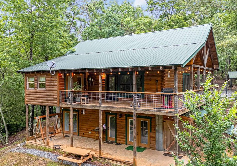 This beautiful 1898 sq/ft log cabin sits on 3.58 acres in the gated community of Lakeland Estates. Its 3 bedroom/2.5 bath, open floor plan, walkout basement and second downstairs den make it the ideal space for entertaining. Each bedroom has it's own walk-in closet. The home features custom hickory cabinets, updated granite counter tops, spacious pantry, five-burner gas stove, stainless-steel appliances and a gas log fireplace to cuddle up to in the living room. Whole-house systems include a Generac generator, Rinnai tankless water heater, Impression Plus Backwashing Water Filtration, and Leaf Blaster Pro 6" commercial grade gutter guard elevates this cabin above the norm. Laundry hookups are located on both floors along with a main floor utility room and powder room; plus lower floor laundry/mechanical room and interior storage. Additionally, the home has security cameras, ETC Ignite fiberoptic, high-speed internet and is currently monitored by ETC security system with monitored smoke detectors. Privacy and seclusion add to the serenity found in this perfect "Mountain Whisper" retreat where wildlife abounds. Enjoy the beautiful outdoors while fishing in the property's .48-acre private pond. Plus its close proximity to Woodring Branch State Park and beautiful Carter's Lake provides additional outdoor activities such as freshwater fishing, swimming, and water sports within a short ride of 8 miles. The attached exterior tack/storage room, two-car metal carport with 10' x 22' storage room and free standing 8' x 10' greenhouse are ready to protect your vehicles, plants and outdoor tools/toys. Make this log cabin your home-away-from-home or your new retreat to come home to everyday.