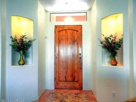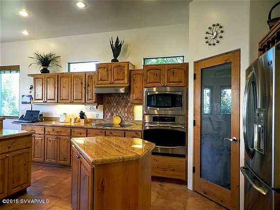 Newest built owner occupied home in 'Sedona' off hwy 179. All one story home with zero steps and wide doors and halls. One of the most energy efficient homes in the area with a Trane A/C 99% hepa and built-in fresh air cooling system. Triple pane Pella windows with encased blinds, 3 rooms with bay window for viewing from, alder wood cabinets and 8' doors, hand-carved front door, granite counters and 10' ceilings throughout house, recycling hot water system, comfort height toilets with half/full flush buttons, multicolor concrete tile roof with solar backed sheathing, Senergy stucco covering an entire house of diamond-lathe mesh, insulated interior walls for energy mass and sound, natural gas fireplace made of Arizona picture sandstone, built-in natural gas BBQ in main patio, 2nd patio ready to screen-in, built-in custom work bench and large wall cabinets in garage, brick laid porcelain tile in the great room, halls, bathrooms and main patio, built-in alarm system. 5.1-channel surround sound system with all components, home WiFi and 52" TV included.