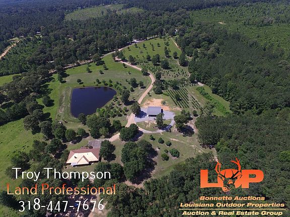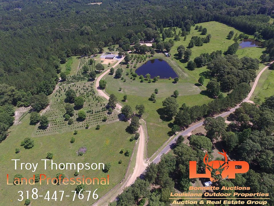 165 James Ryder Rd Pollock, La. 71467 This amazing property of 76.39+/- acres and beautiful country home, is located right outside of the city limits of Pollock, La. at 165 James Ryder Rd. Only 5 minutes off of US Hwy 165, Alexandria/Pineville is only a 20 minute drive and Monroe is less than an hour and a half away. Convenient, yet somewhat secluded, you can watch or hunt deer from your back porch! The "Back Forty" consists of mixed pine and hardwood timber with a thick under story that makes for great hunting. Dyson Creek runs through and along the north border and the property borders US National Forest property on the west for additional hunting opportunity. As you come back south towards the house there are 15+/- acres of mostly planted pines that have recently been thinned along with a small pond. There are several food plots and box stands already established and in place and along with great deer hunting, turkey and squirrel hunting should be good too. Also in place are approx. 3 acres of Christmas trees that the current owner operates as a Christmas tree farm during the holiday season. Great income potential here if the new owner wants to continue and plenty of room for more trees if they want to get into that business. The remaining 18 or so acres is open and would be great for horse or other livestock pasture as there is another pond already established or could be planted in pines or more Christmas trees for income. There is also another home site with all utility hookups and septic system in place that has a separate entrance driveway and would be a great site for a guest house or mother in law quarters. A 3 year old large 50' x 35' metal shop with 15' lean to and 2 large roll up doors on a concrete slab with a half bathroom and kitchen has plenty of storage for your boats and bikes and is a great place to entertain also. There are a couple of other small outbuildings throughout the property. The spacious 3BR, 2.5 BA brick home with metal roof consists of approx 2445 sqft heated and about 3435 sqft under roof. A large 2 vehicle carport has an office/game room in the back along with walk up stair access to the attic that can be floored for additional storage. As you enter the home into the breakfast nook and kitchen area, there is a large washroom and half bath near the entrance. The kitchen was recently remodeled and has lovely granite counter tops and new cabinet doors and the dining room is right off of the kitchen also. A spacious living area with a cathedral ceiling finished in tongue and groove ponderosa pine with walls of tongue and groove cedar, also has a propane gas log fireplace that has a blower tied in to the ducts so it can be used to heat the whole home. The large master bedroom has pecan wainscoating throughout and a large walk in closet along with a huge master bath with jacuzzi tub and separate shower and plenty of vanity area. On the other side of the house, the remaining bedrooms have ponderosa pine wainscoating along with the hall leading to them and the bathroom that separates them has a tub shower combo. The home has a propane backup generator and dual zone central AC and heating with two units. This property is walk in ready and offers great country living, convenience, seclusion, hunting, and income potential with the Christmas trees and timber. Asking price is $630,000. Shown by appointment only.