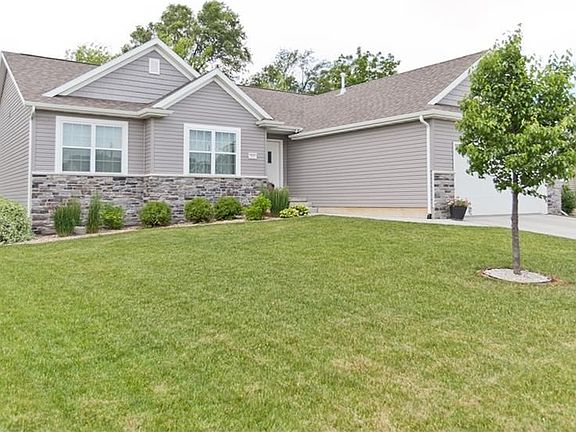 Perfect home for the move up or first time home buyer looking to get in Linn Mar. Gorgeous maintenance free exterior with white azek accents and stone. Backyard has a deck and lots of space between you and homes in the rear partially hidden by mature trees. Foyer with linen closet and hardwood floors. Kitchen has white cabinets with crown molding, hardwood floors and stainless steel appliances. Spacious nook with slider to deck. Great room with fireplace with custom build mantle and windows overlooking backyard. Entire home with grey walls, painted trim, with cathedral ceilings in great room and kitchen. Master suite, vaulted ceiling, his/her sinks, walk-in closet. 2 additional bedrooms perfect for kids or office carry the painted trim look. Lower level has huge great room perfect for entertaining, tons of storage and rough in for future bath and egress window for a 4th bedroom.