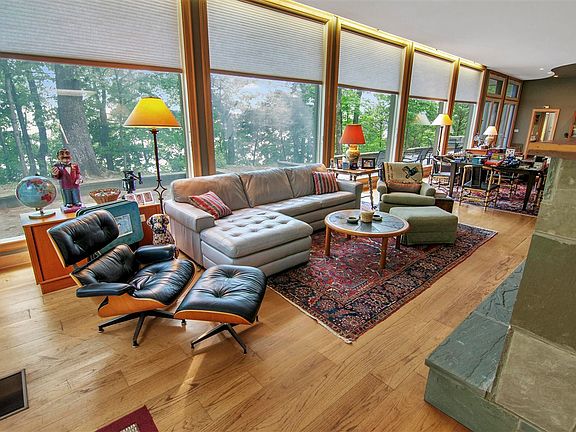 Rare custom contemporary design on Barren River Lake! This property features 3 bedrooms, 3 baths with floor to ceiling windows, breathtaking lake views. Custom wide plank hardwood and slate flooring. Situated to provide scenic lake views. 3 sets of custom 8-ft wooden screened doors, with transoms to allow the refreshing lake breeze to flow through the home. The open kitchen, great room and hearth room are perfect for entertaining, featuring a bold spiral staircase to the master bedroom, with uninterrupted glass views fo the lake. 2 docs, per Corps approval.