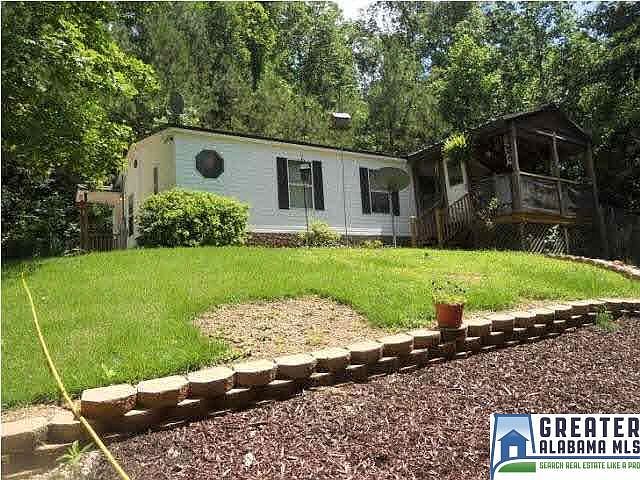 If you are looking for privacy, then look no further! Located on 3 partially wooded acres, the yard has lovely landscaping in the front including fruit trees with a covered front porch and back deck to enjoy the lovely views of nature. This manufactured home has been recently updated with a new metal roof, all new plumbing throughout, new water softener, and new HVAC system. The home features 3 large bedrooms with walk in closets and a large master bath with sitting area. The family room showcases a beautiful wood burning fire place to keep warm during the winter. Paved drive with plenty of parking, and also includes a metal storage building. Conveniently located, the home is 10 minutes to Trussville, 15 minutes to Pell City, and less than 30 minutes to Birmingham.