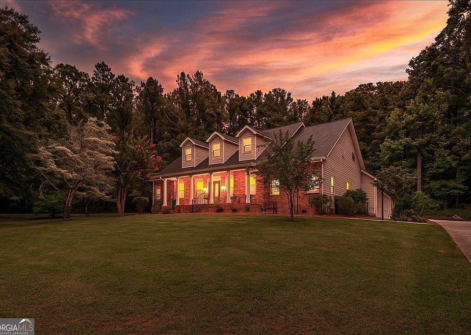 Designed for connection - where mornings begin with coffee on the front porch and evenings wind down under open Georgia skies. Set on 6.3 private acres. This classic brick home delivers what most promise but few actually give: space to slow down, entertain, and truly live. More than 3,500 square feet built for comfort, privacy, and the kind of ease that makes guests want to stay longer. Main Level: Wood floors lead through warm, sunlit spaces. The family room features a fireplace and French doors that open to the outdoors, while 12-foot ceilings add to the home's inviting flow. The kitchen anchors the main level with granite counters, gas cooktop, and a breakfast room that feels like a quiet getaway. A spacious primary suite, second bedroom, and an optional fourth bedroom or office keep everything practical yet flexible. Upstairs: A private suite with full bath and oversized closet is perfect for guests, teens, or extended family who need their own corner of calm. Outside: The wide brick porch welcomes rocking chairs and quiet evenings. Out back, the covered patio and open lawn invite cookouts, reflection, and kids or grandkids running barefoot through the grass. Clear more if you want wide open space, or leave it wooded for the privacy that makes Lake Hampton so special. Details That Matter: Custom plantation shutters, extended concrete walkways, and timeless craftsmanship that feels solid and enduring. Owners here rarely leave - once you feel the peace of Lake Hampton, you'll understand why. Kelly Cooley, Broker | Adams AMI | 678-300-9090