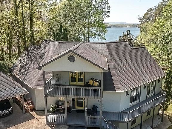 Looking for the perfect Lake Shore property where the lake, Mtn & sunset views will never disappoint, look no further.This Lake Blue Ridge treasure offers a delightful unique Nautical Contemporary home located in a lovely neighborhood situated on a 1-acre private lakefront nook & includes 3BRs/Large Loft/ 2 BAs & a spacious 2 car carport. The homes charming interior is finished w/a nautical modern look & own unique open floor plan w/the Living Dining & Kitchen areas offering several focal points overlooking the lake. From the stacked stone gas log fireplace & original oak flooring to the well-designed kitchen & patina reclaimed wood dining area wall & open pantry. The master BR located on the main includes a unique reclaimed wood wall & more lake views! The large loft area on the upper floor has the best lake view in the house! The other 2BRs R located on the terrace level along w/an extensive family room area, lake views & level walk out to the large firepit area & down the terraced decks to the dock! All this lakefront splendor of daily lake life can be yours!
