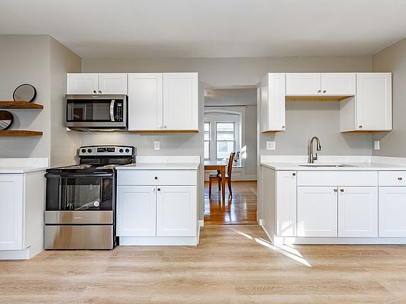 You will want to call this beautifully remodeled 3 bed, 1.5 bath property in a neighborhood location of Springfield, MA, your home! The front porch welcomes you into the gleaming hardwood floors throughout. The renovated kitchen boasts new cabinets, flooring, quartz counters, and stainless appliances. Perfect for entertaining, the kitchen flows into the dining room, featuring a large bay window that drenches this space in natural light. The living room is spacious, and a convenient renovated half bath completes the main floor of this home! The hardwood floors continue upstairs through 3 bedrooms, all complete with oversized and walk in closet spaces. Upstairs you will also find a renovated full bathroom, as well as a flex space that could be just perfect for a home office area! The backyard is oversized featuring a double lot and offers a patio area, as well as a firepit area to enjoy. Other features include a 1-car garage, new siding & more! Schedule your showing today!