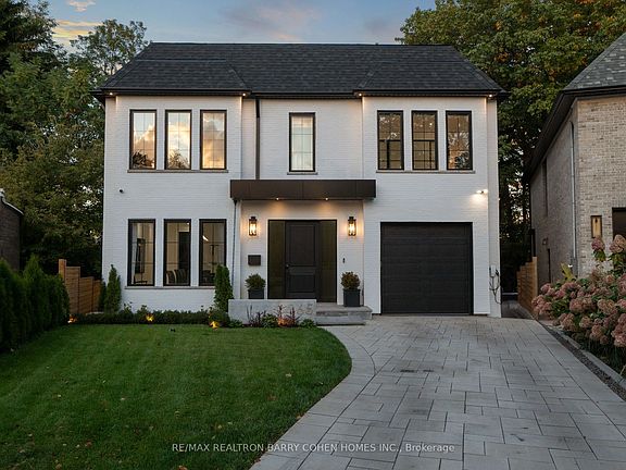 Newly built modern residence in the heart of South Leaside offering nearly 6,500 sq.ft. of living space! Exceptional designer-curated finishes and smart home technology throughout. Designed for the modern family and built to impress, this magazine-worthy residence perfectly blends luxury, functionality, and versatility. Oversized principal rooms, two private home offices, and a full legal in-law suite with income potential make it ideal for multigenerational living or a flexible live-work lifestyle.Showcasing engineered white oak floors, soaring ceilings, and expansive windows with motorized blinds, every detail reflects thoughtful design and quality craftsmanship. The custom kitchen is a true centerpiece - featuring a panelled fridge, trash compactor, waterfall island with hidden storage, and full-height cabinetry - flowing seamlessly into the family room with a marble gas fireplace and walkout to the backyard. Step lighting, integrated speakers, and sleek modern finishes complete the main level's sophisticated aesthetic.Upstairs, four oversized bedrooms include a magazine-worthy primary suite with a slatted wood feature wall access to His & Hers WICs, cove-lit ceiling, fireplace in stone surround, fully equipped bar, walkout to a private balcony (hot tub-ready), and a spa-inspired ensuite with steam shower, freestanding tub, heated floors, and double vanities. Secondary bedrooms are equally impressive, and a dedicated laundry room with dual washer/dryers enhances everyday ease. Upstairs office may be converted to a 5th bedroom.The lower level extends the living experience with a gym, sauna, recreation lounge, and wet bar equipped with a dishwasher and bar fridge - plus a soundproofed legal in-law suite with its own entrance, kitchen, 3-piece bath & laundry.Located in the coveted Bessborough/Rolph school district, this home delivers a rare combination of sophistication, functionality, and future income potential in one of Toronto's most sought-after neighbourhoods.