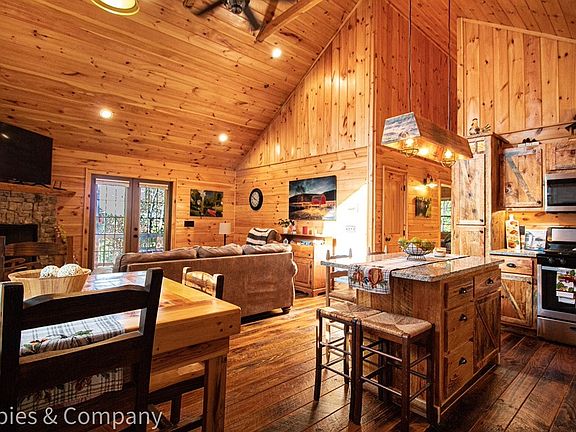 Like Brand New only better, this cabin in Cherokee Oaks is one to put on your list. All landscaping is completed and fencing for the dogs. Cabin is sparkling clean and shows like a dream with all one level living, guest bedroom, hall bathroom and master suite with double sinks and granite. Kitchen island is large and provides ample room for baking and whipping up gourmet meals while enjoying your guests in the great room. Stone fireplace sets off the beautiful wood floors and highlights the craftsmanship through out the cabin. Sit on the covered front porch and enjoy the mountain views, the trees and piece and quiet. Toy garage included, easy parking, turn around & FIBER OPTIC INTERNET!!