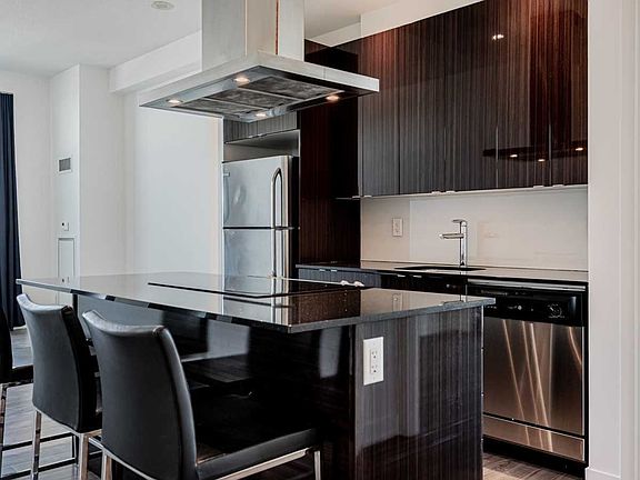 Breathtaking Open Concept 2 Bedroom, 2 Bathroom Corner Suite That's Soaked In Natural Light. Over 800 Sq Ft Of Exquisite Features That Include, Laminate Floors, 10 Foot Ceilings, Enormous Functional Kitchen With Quartz Center Island & Chimney Style Hood Fan With Breakfast Bar, Built-In Stainless Steel Appliances, Extensive, 2 Alluring Bedroom Ensuite's, Primary Bedroom Walk-In Closet, Floor To Ceiling Windows, Ensuite Laundry, Pot Lights, Soaring Ceilings & Massive Balcony With North West Unobstructed Exposure & Amazing Sunsets! Walking Distance To Restaurants, Shopping, Public Transit, Trails At Lake Ontario, Minutes To Qew & Mimico Go Station.