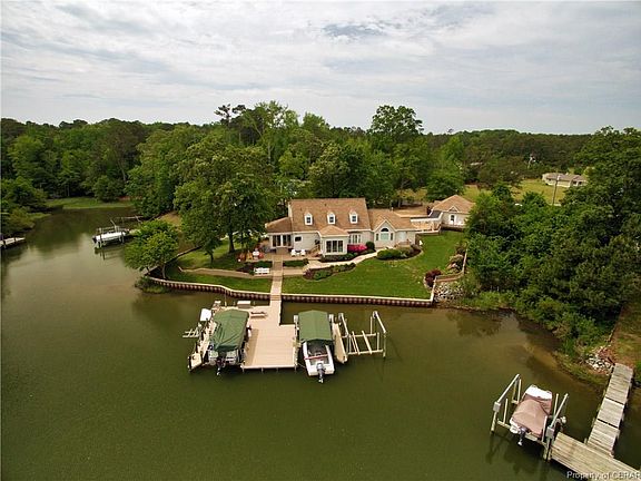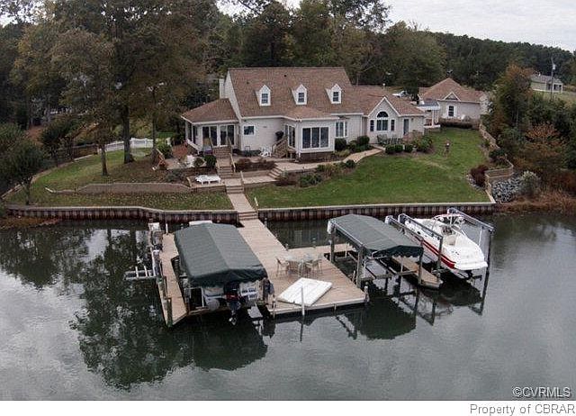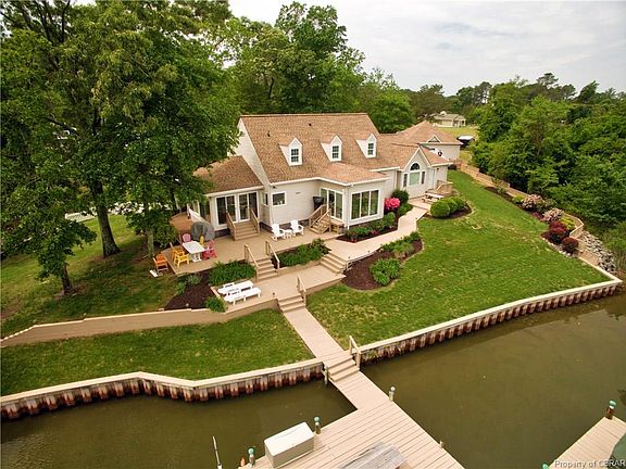 This beautiful 2900 sq.ft. Cape Cod is located on Sturgeon Creek with a view across the Rappahannock River. The 3 bedroom, 3 bath home is in excellent condition with a portico leading to an oversize 2 car garage, with heat and air condition and a half bath. There is a large Master bedroom with an unique bath on the first floor. A study, great room, Florida room and all the bedrooms have a water view. The property is well landscaped and has numerous decks to enjoy the vista.