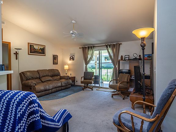 Welcome to this great 3bed/2bath home what provide a comfort and convenience. Dining room has large window connected to the cute covered backyard porch with a view of green fields! The spacious kitchen and dining area with a high vaulted ceiling, two skylights for a lot of natural lights, with plenty of cabinets and a bar area for your morning coffee! Master bedroom futures a walk-in closet. Roof and large size water heater updated in 2022. The 1 car garage well organized with plenty of cabinets for your convenience and storage. Fully fenced backyard gives you privacy. There is enough space for flowers, gardening and chance to enjoy your harvest of peach and cherry trees! This home is in a gated 55 and over community with a clubhouse, sidewalks, walking trails, picnic area and river access for fishing and relaxing. The clubhouse has a library, kitchen, party room, fitness center and game room. There is gated RV parking available. Call for private tour to see this amazing community and this cute house!
