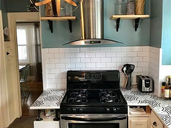 Talk about charming! Updated,spacious 3 bedroom 1 bath home with old world charm. Original features include hardwoods, Gum-wood, and unique tile. 2018 kitchen updates include new floors,counters & appliances with vent hood. 2014 bath update with vanity, toilet and tiled shower. TEAR OFF roof in 2017, NEW furnace AND H2o heater in 2016'. Some windows replaced in 2016. Good sized enclosed porch to relax, read, enjoy mornings in. Finished attic has endless useful possibilities. Basement has a partially finished nook and tons of storage space. Quiet backyard includes a deck for those summer bbq nights with friends and family. A great opportunity for someone looking to be at ease with big ticket items...they are ALL NEW!