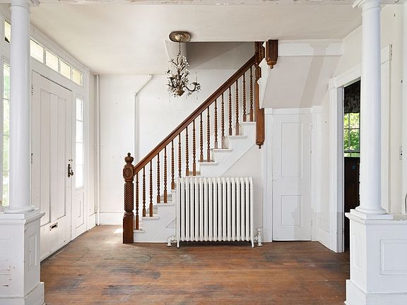 Incredible opportunity to own a stately downtown Easthampton property with R5 zoning. This side by side 2-family home has many charming antique details including high ceilings with pressed tiles, hardwood floors, wall sconces, large built-ins and a beautiful wooden staircase. The primary unit features a large living room, dining room, parlor, sitting room (or first floor bedroom), full bathroom, expansive kitchen with laundry hook-ups and pantry. Upstairs are five bedrooms and a kitchenette & full bath as well as attic access. The second unit has a large open living and dining room, kitchen and half bath with laundry on the first floor. The second floor offers three bedrooms and a renovated full bath. Detached 2-car garage and rear deck to an in-ground pool. Unbeatable location and amount of space.