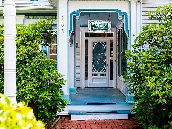 Historic Sandwich village restored Victorian home on 3/4 acre lot with separate two bedroom carriage house for your guests or extra income. Village setting surrounded by shops, galleries, fine and fun dining, museums, gardens and beaches. This beautifully restored 1848 Victorian has 7 large en suite bedrooms, 5 in the main inn and two suites in the carriage house. Two additional smaller bedrooms are in the suite off the kitchen in the main house with separate sitting area and private entrance. Features 11-foot coffered ceilings, original woodwork and interior stained glass transoms, gracious living and dining areas indoors and out. An ideal place to entertain guests or the entire family. Large sunny dining room and modern granite and stainless chef's kitchen with two dishwashers and two ovens and a large granite island. Modern systems throughout and new title 5 septic system installed in 2022. Offered furnished. Has operated as a 7 guest room b&b for many years.