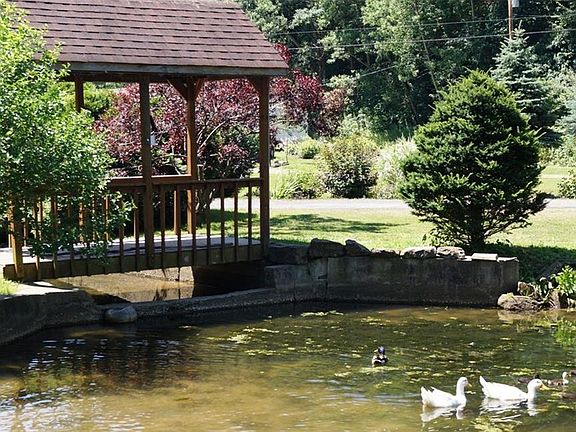 Spacious 2 story home situated on 3.438 acres located just outside of Minerva. 5 bedrooms, 3 bath floor plan was designed with first floor master with master bath plus first floor living suite. Large kitchen with walk-in pantry. Living room with woodburner and family room with propane logs. First floor laundry. Enjoy sitting on the deck and watching the ducks swim in the spring fed pond. Covered back patio plus covered front porch for your pleasure! 40x40 (4 car) attached garage plus 2 outside buildings provide wonderful storage space. A great place to call home.
