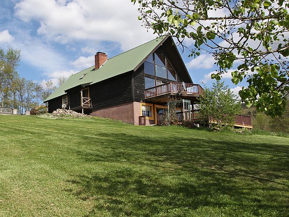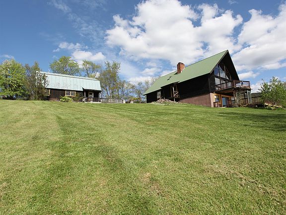 Charming Lincoln Log Chalet style home on picturesque county road. 8 acres of woods and rolling meadows. This home offers open floor plan, first floor master suite, cathedral ceiling, living room with wood burning fireplace. Finished lower level with slider doors leading to one of two decks overlooking gorgeous mountain views. Over-sized two-story garage with heated workshop. Short distance to Mallet Pond state land. A must see.