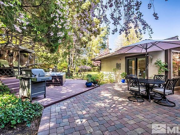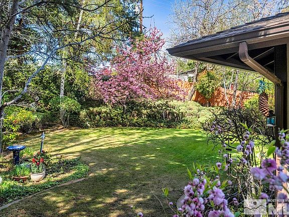 Timeless charm with updates in a peaceful, park-like setting in Old Southwest. From the moment you arrive, you’re greeted by paver walkway, ivy arch entrance, a formal entry with unique built-in garden planter, setting the tone for the natural beauty that continues throughout the property with an abundance of mature trees and year round greenery.Spacious living room featuring a window seat and a beautiful two-way gas log/wood-burning fireplace that opens into the light-filled great room. Several skylights, and beautiful windows make this room special and the French doors lead you to a private backyard retreat—complete with a paver patio, elevated seating area around a nearly new hot tub, lawn and mature landscaping. It's truly like having your own private park, but that’s across the street. The large dining room is perfect for entertaining, while the beautifully updated kitchen features granite countertops, a new dishwasher, cabinet pullouts, and a breakfast nook that overlooks a serene atrium with a Japanese maple and a fruitless cherry tree. The generously sized master suite includes a French door to the yard, a walk-in closet with built-ins, dual vanities, and a garden tub for perfect relaxation. Additional highlights include a large “she-shed” complete with windows, sheetrock, outlets and lighting, a perfect meditation patio awaits you behind an iron gate, paver walkways and driveway, new windows and a rare combination of both space and privacy. Located directly across the street, an exclusive, for 19 neighbors, a private one acre park where you can kick the soccer ball, play catch and have large gatherings. It’s next to the 10th hole of Washoe Golf Course and just a short walk to Washoe Tennis Club. Minutes from downtown Reno, the airport, top-rated schools, shopping, this home truly offers the best of nature, comfort, and SW convenience.