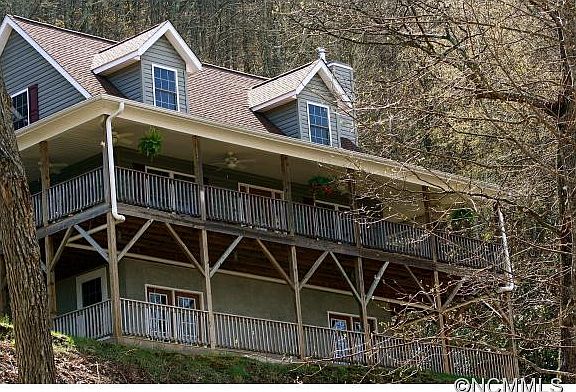 Beautiful secluded country cape cod built in 2005 on 10 acres in Swannanoa. Nearly 2000 sqft, 3 bedrooms, and 3.5 bathrooms. Over 1,500 sqft of covered front deck that features views of the surrounding mountains. Paved driveway, with a large two car garage. The master suite is on the main floor, with a spacious custom walk in closet. The laundry room and half bath off the kitchen for convenient access. The open concept kitchen that flows into the dining room makes entertaining a breeze. Your comfort is ensured by a high efficiency heat pump that offers heating and air conditioning, as well as a gas fireplace in the living room. The bonus room over the two car garage is perfect for a media/family rec room. The main level is covered with warm, solid hardwood oak flooring. Each bathroom has durable tile floors. Downstairs has custom stained concrete flooring with high ceilings, and plenty of storage space. The deluxe kitchen features custom maple cabinets with pull out shelves and Corian solid surface counter tops. The dual fuel range has a convection main oven, and a secondary baking oven. The kitchen also has a dishwasher, side by side fridge, over the range microwave and a garbage disposal. A concrete back patio off the kitchen offers the perfect place for outdoor cooking. This home offers breathtaking mountain views, in a quiet peaceful gated community. The low water usage appliances and fixtures are combined with an eco-friendly rain water collection system. These natural wooded surroundings are only 15-20 minutes to downtown Asheville. MOTIVATED SELLER