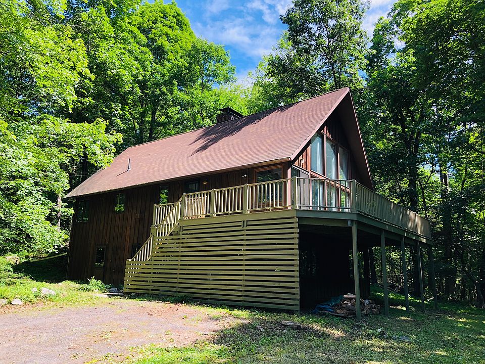 Private, yet close to everything! Down a long picturesque drive, surrounded by "nature's landscaped woods" sits this Charming Chalet. Nestled in a cozy setting on 4.5 acres, this 3 Bedroom/2 Bath, home boasts an open floor plan, cathedral ceilings, a wall of windows and a large deck with seasonal mountain views. There's plenty of room for everyone to snuggle up in front of the stone fireplace on those cold winter nights. In the summer, entertain while you BBQ on the large deck and relax in your own private shaded oasis. Did someone say Bonfire? There's plenty of room to plant your Chiminea down and enjoy. Even though you feel like your miles away from civilization you're just a 5 minute drive to the center of New Paltz's vibrant shops of Main Street, The Mohonk Mountain House, The Mohonk Preserves, Walkill Valley View Farm, multiple orchards and rock climbing The Gunks, so there's never really a lack of fun things to fill your time with. Less then 2 hours from NYC and only minutes off the thruway exit but privately sited, this home offers the perfect getaway or a great full year residence!