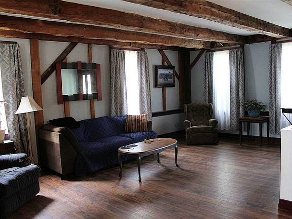 A large New England style home with attached barn with loft and basement perfect for a workshop. Can work for a four bedroom, 2 ½ bath home with large living room, dining room and eat-in kitchen. First floor bedroom with half bath. A large ¾ acre landscaped lot with back porch and fenced back yard. Property has been recently surveyed. Upstairs to the rear can be used as a 2 room efficiency/in law apartment.