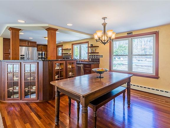 Just Move in and Enjoy! This L Shaped Ranch Is Enveloped in Light! Features an Open Floor Plan, with a Kitchen to DIE for! Custom Cherry Cabinets, Granite Counters, Brazilian Cherry Floors and SS Appliances. Opens to Living Room with Fireplace w/ Harmon Pellet Stove & Picture Window Overlooking Tranquil Grounds. Over-sized Family Room has Hardwood Floors, Built Ins and Large Windows. Screened in Porch with Hot Tub and View of In-ground Pool & Large Fenced Backyard. Impressive Workshop in Basement. Attached 1 ½ Car Garage. Private 2 acre Lot Situated in a Lovely Setting. You Will Fall in Love!