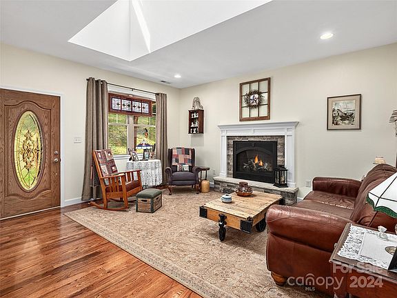 Stunning and private 3BD/3BA mountain oasis situated on over 5.5 Acres! This beautiful home offers granite top kitchen w/stainless steel appliances, dining area, laundry room off the kitchen, inviting vaulted ceiling Living room with vented gas log fireplace, incredible primary suite with gorgeous bathroom, 2 additional bedrooms on the main and updated full hall bathroom! Spacious walk-out lower level features huge family room/rec room, 2 bonus rooms used as bedrooms, full bathroom with beautiful ship lap, huge office, and storage room. Impressive long range mountain views, Oversized 1-Car Garage, Ample Parking, over 5 wonderful acres, Rocking chair front covered porch and entertaining back porch complete this must see!